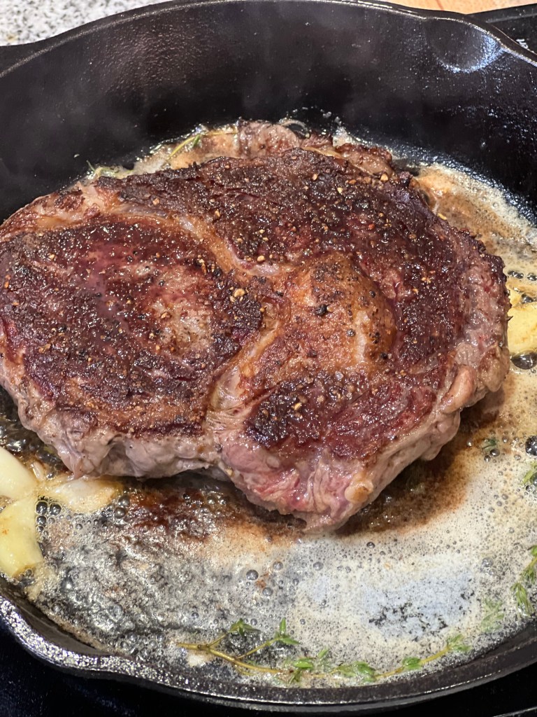 Au Poivre ( pronounced “oh-pwav”) means ‘with pepper.’ This is such an easy steak recipe that can be done right on your stove top (cast iron pan works great here) and the flavors explode in your mouth. You can use a New York Strip steak, a Rib-eye, a Sirloin, Flank steak, or even a Filet Mignon ( if you can afford it, why not?). It can be made plain without any accompanying sauce but why not go for the whole monty? ENJOY!