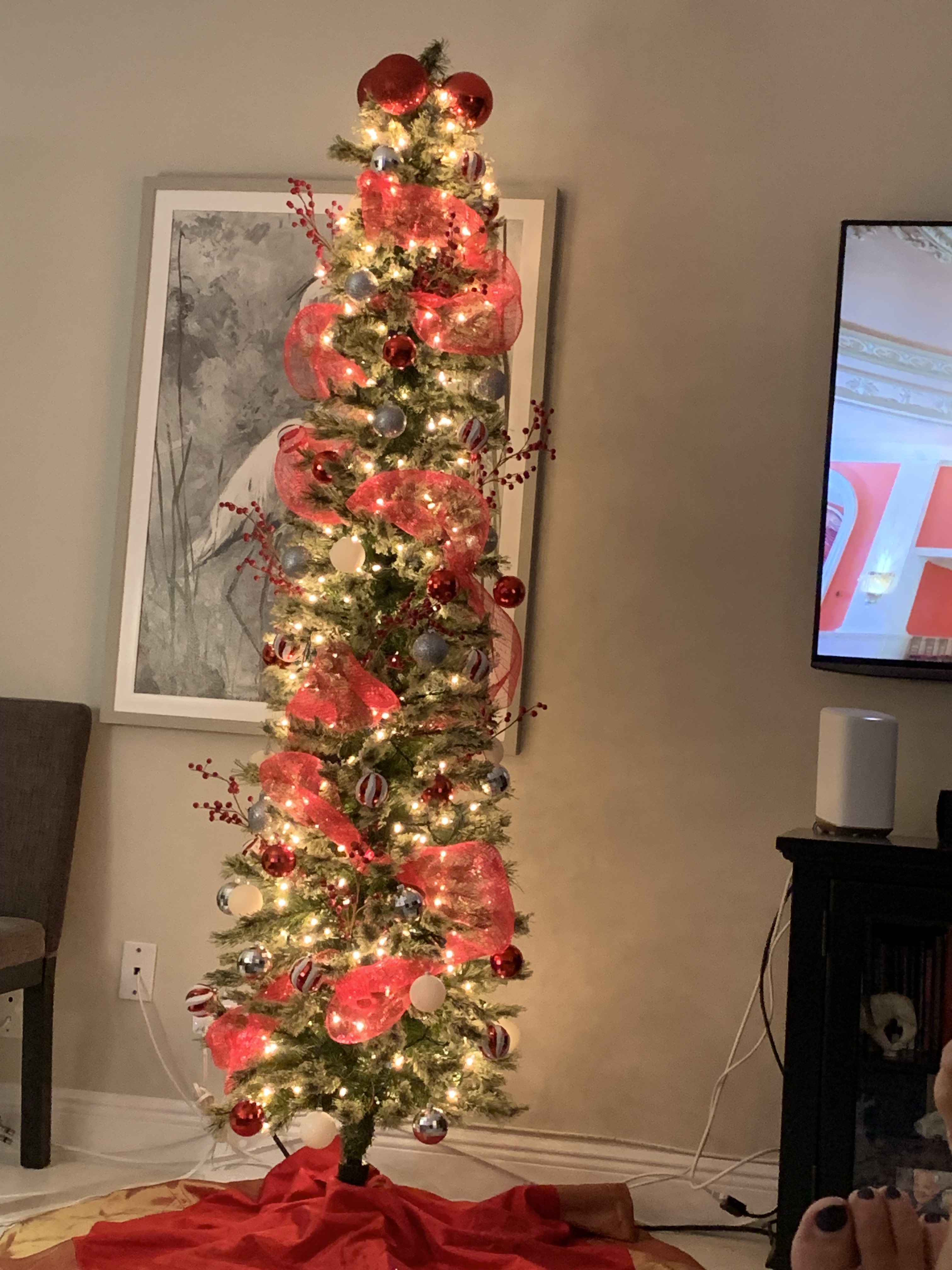 • Second, are the decorations. Who doesn’t love lights and sparkle? It is everywhere this season. From the lighted trees to the decorations on homes. Everywhere you look there are lights in every color. Some twinkle and some blink and some glow. I love decorating my home with candles. Real flame candles and battery-operated ones. I have them everywhere at Christmas time. When I moved to Florida I said I wouldn’t put up a Christmas Tree but I just couldn’t help myself and I bought a Pencil Tree (a skinny one) and it has gone up every year!